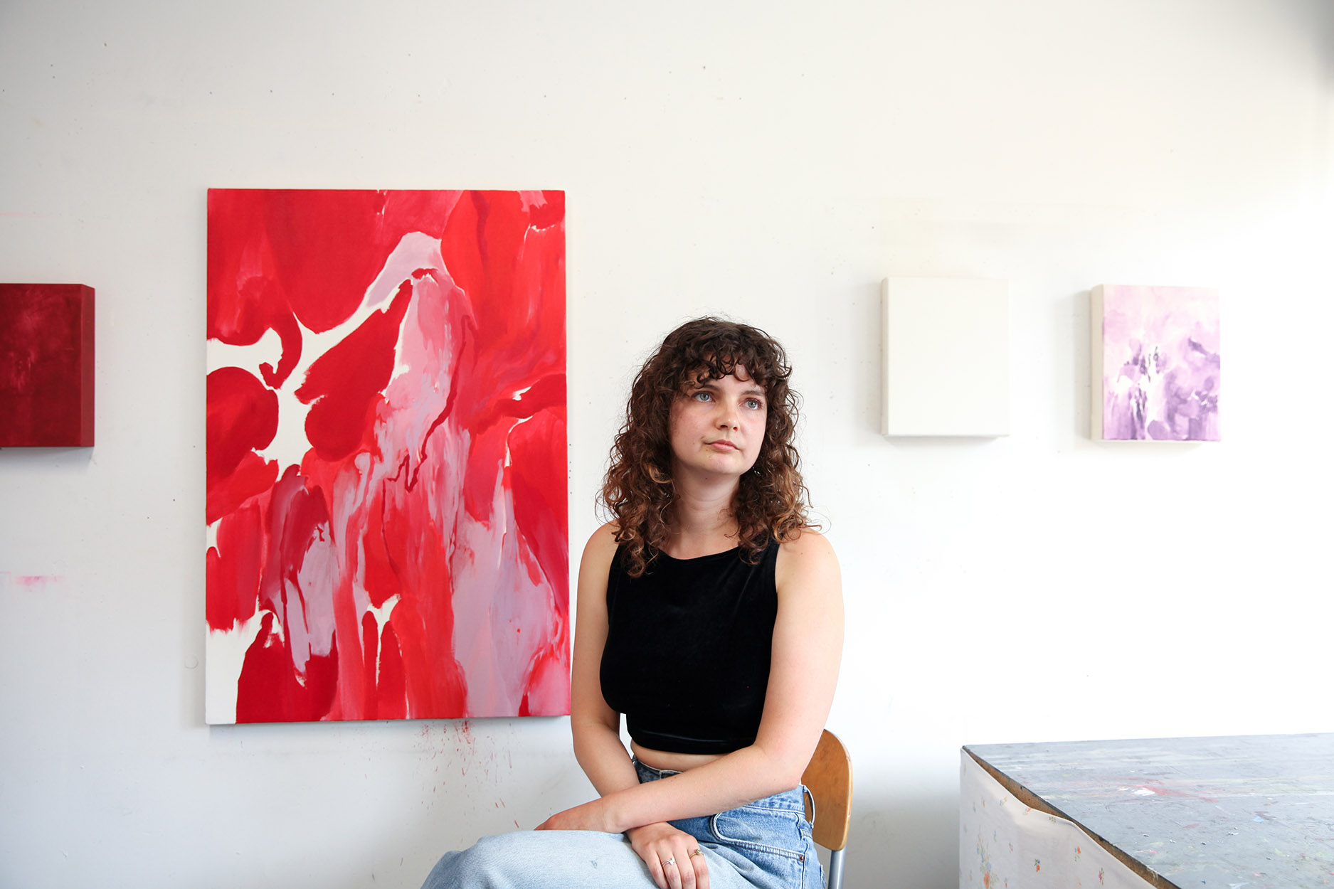 Born in Gaspésie (QC) in 1994, Canadian artist Laurence Belzile now lives and practices her art full-time in Vancouver (BC). She holds a Bachelor of Fine Arts from Concordia University, with a major in painting and drawing, and a Master of Fine Arts from Université Laval. The artist strives to democratize abstract visual art, takes part in collaborations and creative residencies, and participates in auctions and art fairs. Since 2016, Laurence Belzile has presented her work in group and solo exhibitions across Canada, in various galleries including the Vernon Public Art Gallery (BC), Richmond Art Gallery (BC), Galerie Montcalm (QC), Centre d'art de Kamouraska (QC) and Galerie Champagne et Paradis (QC), which represents her. Her work has been supported by various prizes and bursaries, including the Canada Council for the Arts (2023-2024) and Québec City's Première Ovation measure (2019-2021). Her work is part of the public collection of the City of Boucherville and of the Méduse Collection of Québec City.